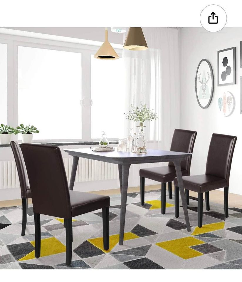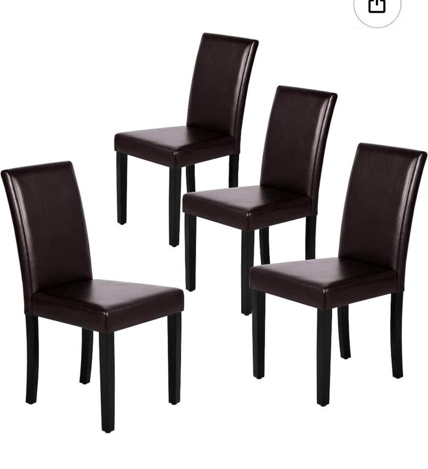 Dining Chairs Side PU Cushion Chairs with Waterproof Surface and Wood Legs for Kitchen Restaurant and Living Room, Set of 4, Brown