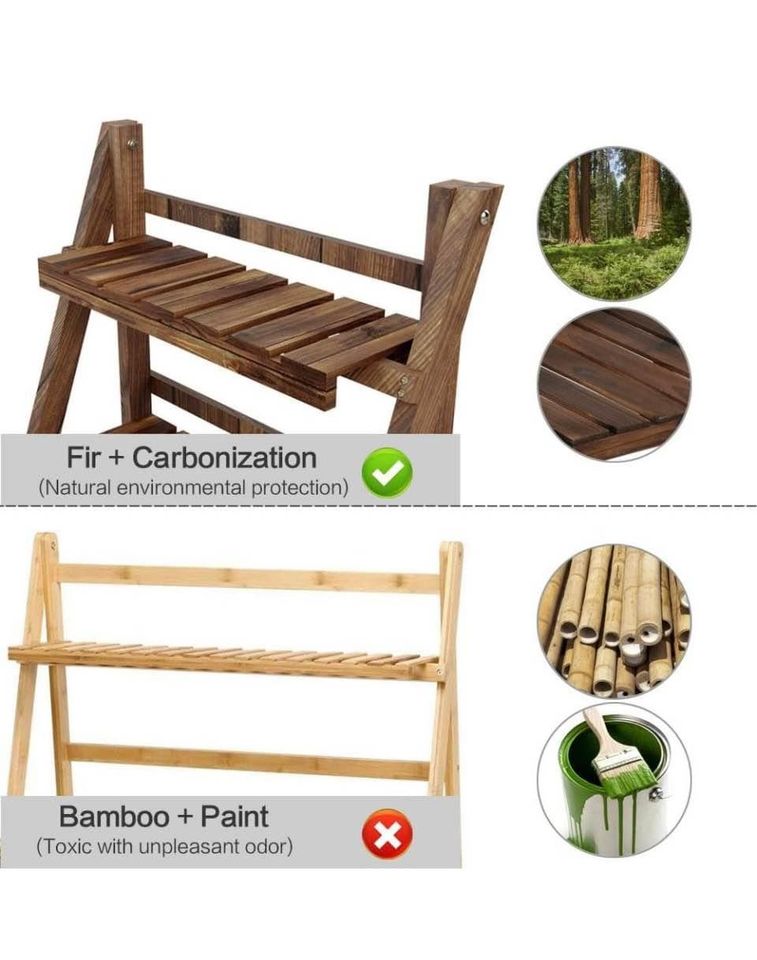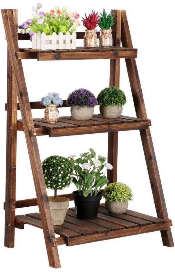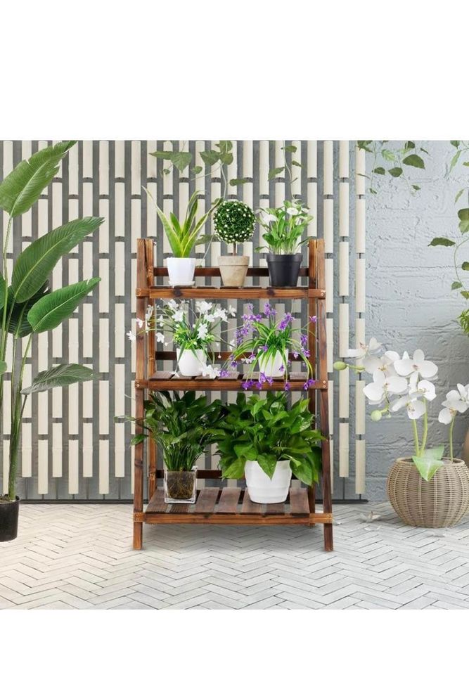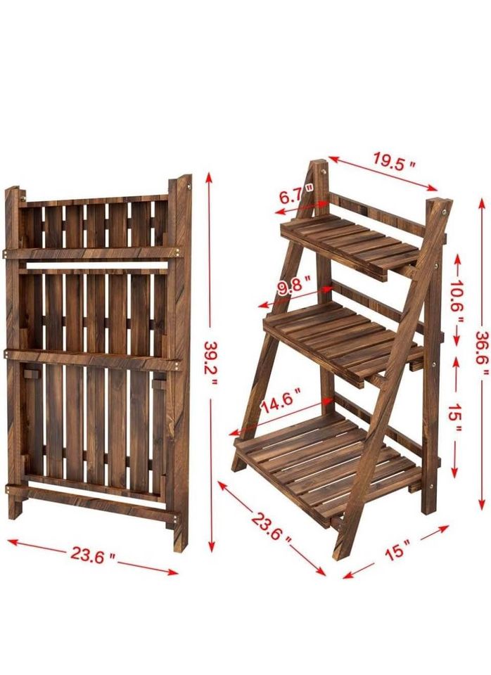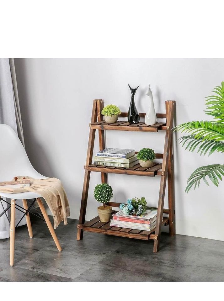 Folding Plant Stand Wooden Foldable Plant Shelf 3-Tier Flower Pot Stand Plants Display Shelf Rack Ladder Garden Indoors Outdoors 23.6 x 15 x 36.6in. New in a box